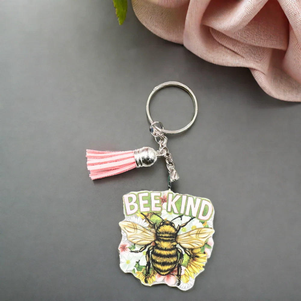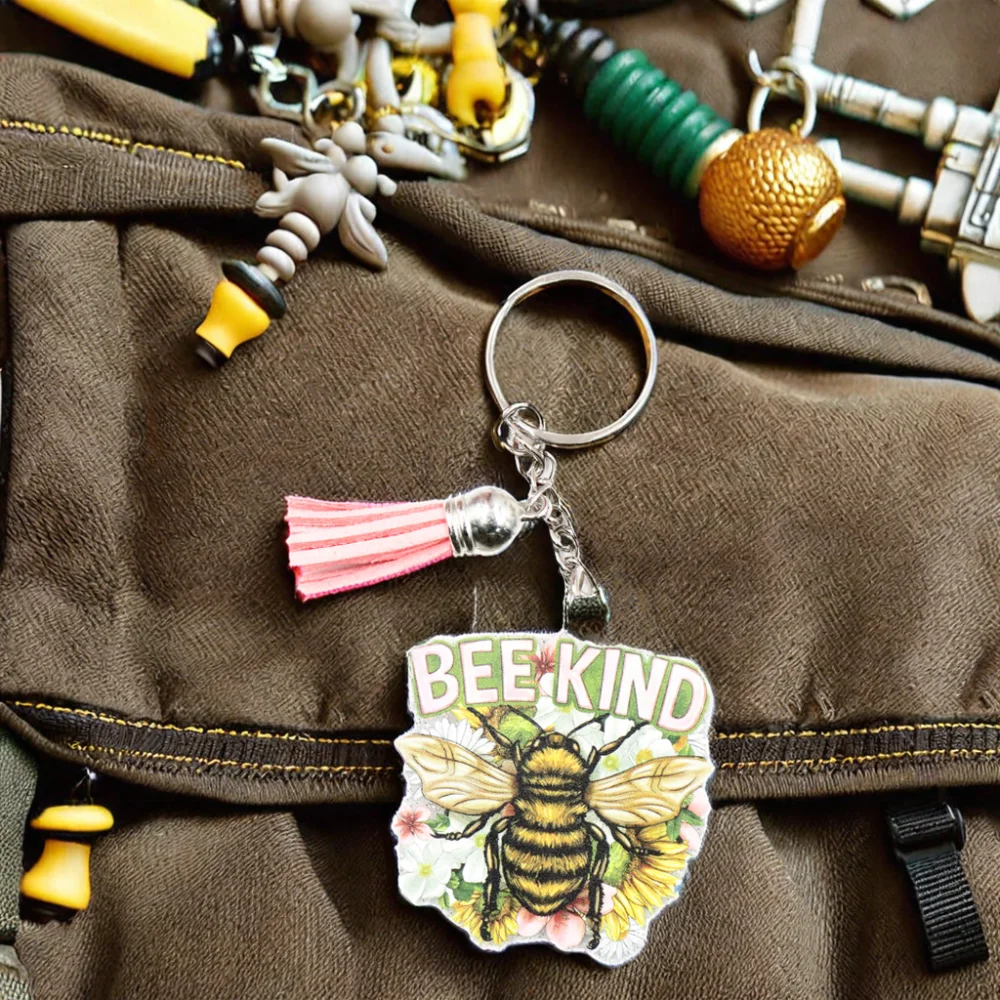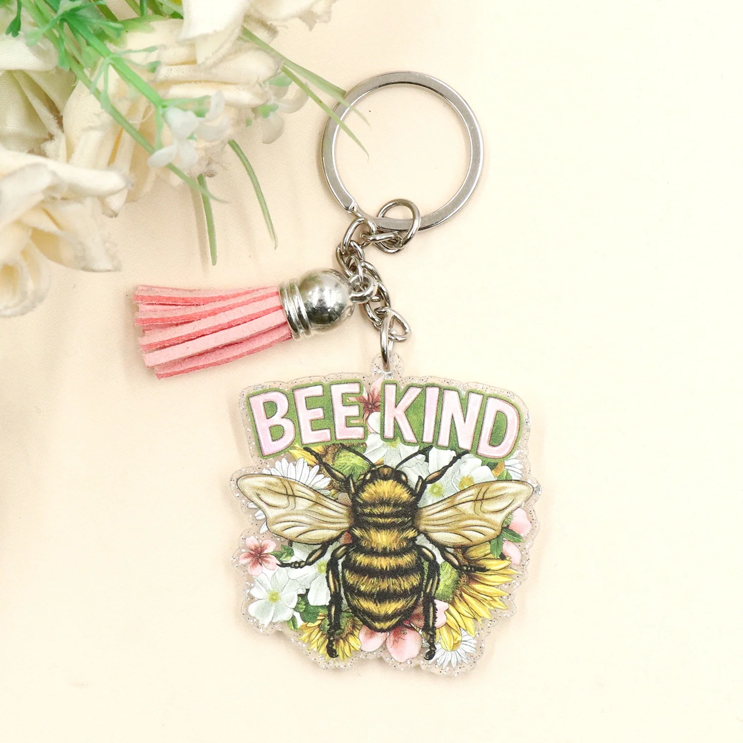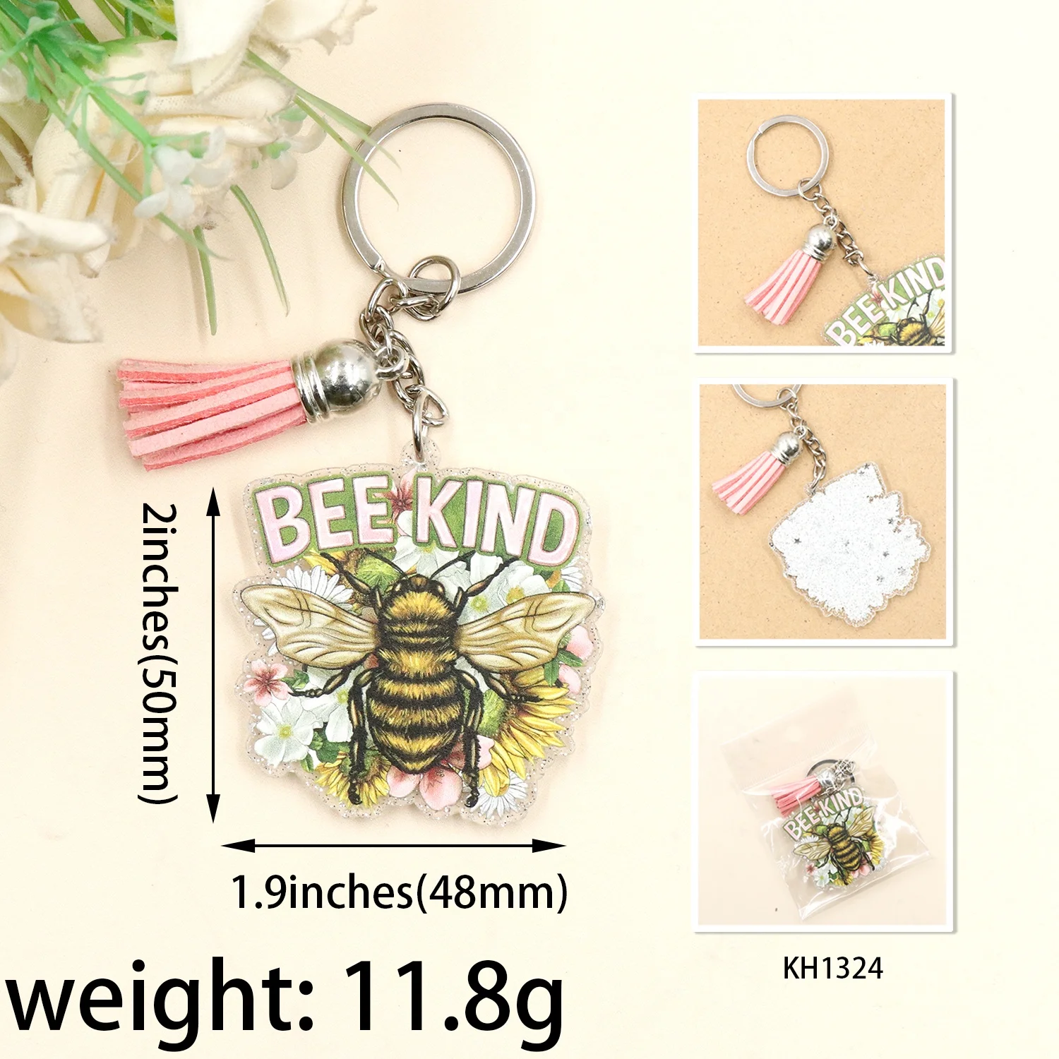 ZSHKH1324 Bee Coin Holder Keychain Stainless Steel with UV Printed Plastic Unique Bee Design Keychain