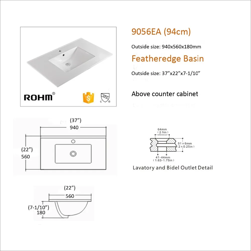9056EA-94 Bathroom Vanities Cabinet Basin Big Size Basin CUPC