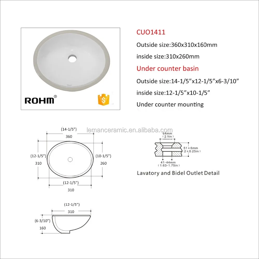 | Product Name | CUO1411 Under counter basin | Size | 14-1/5"*12-1/5"*6-3/10" |