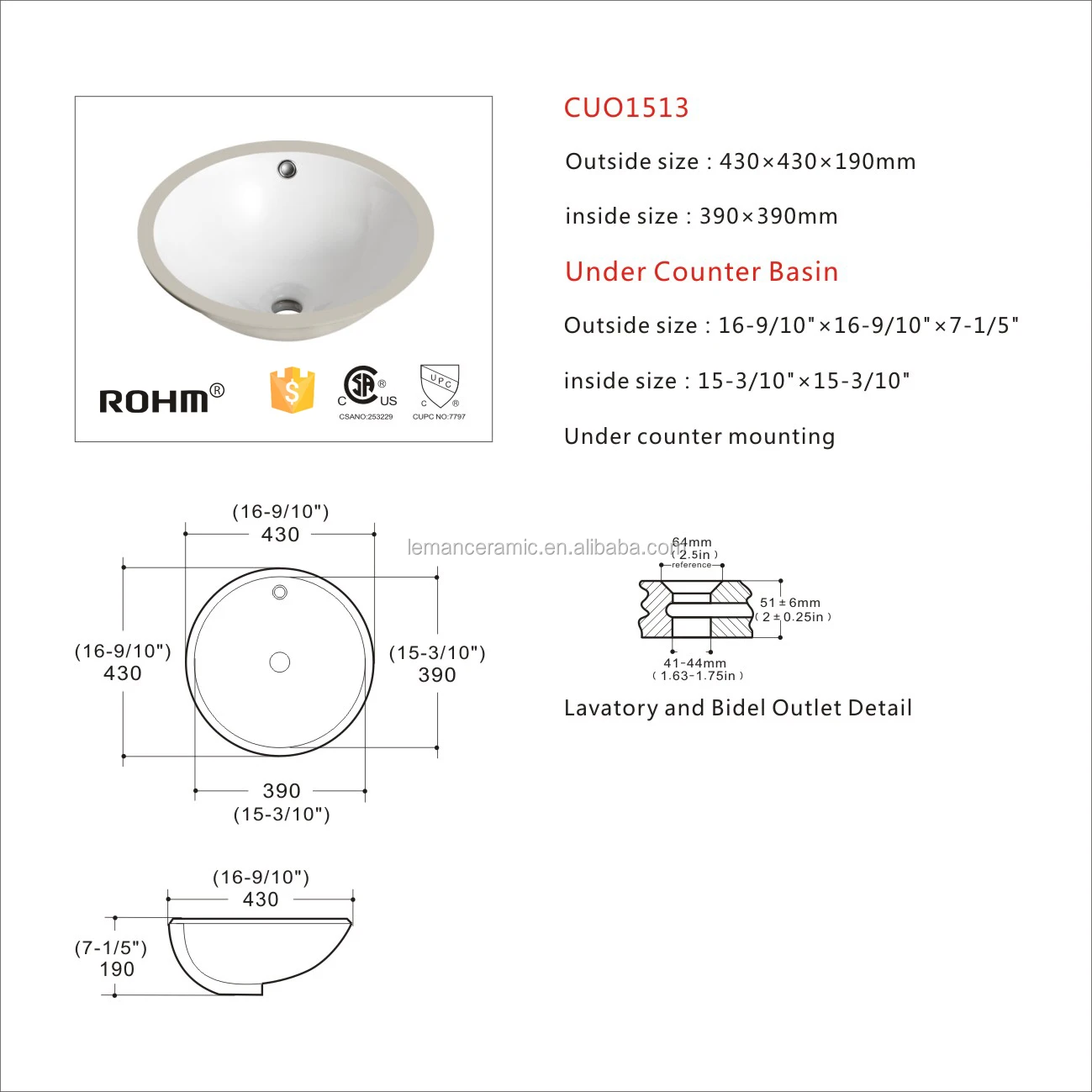 | Certificate | CUPC and CSA | Inner slze | 15-3/10''*15*3/10'' |