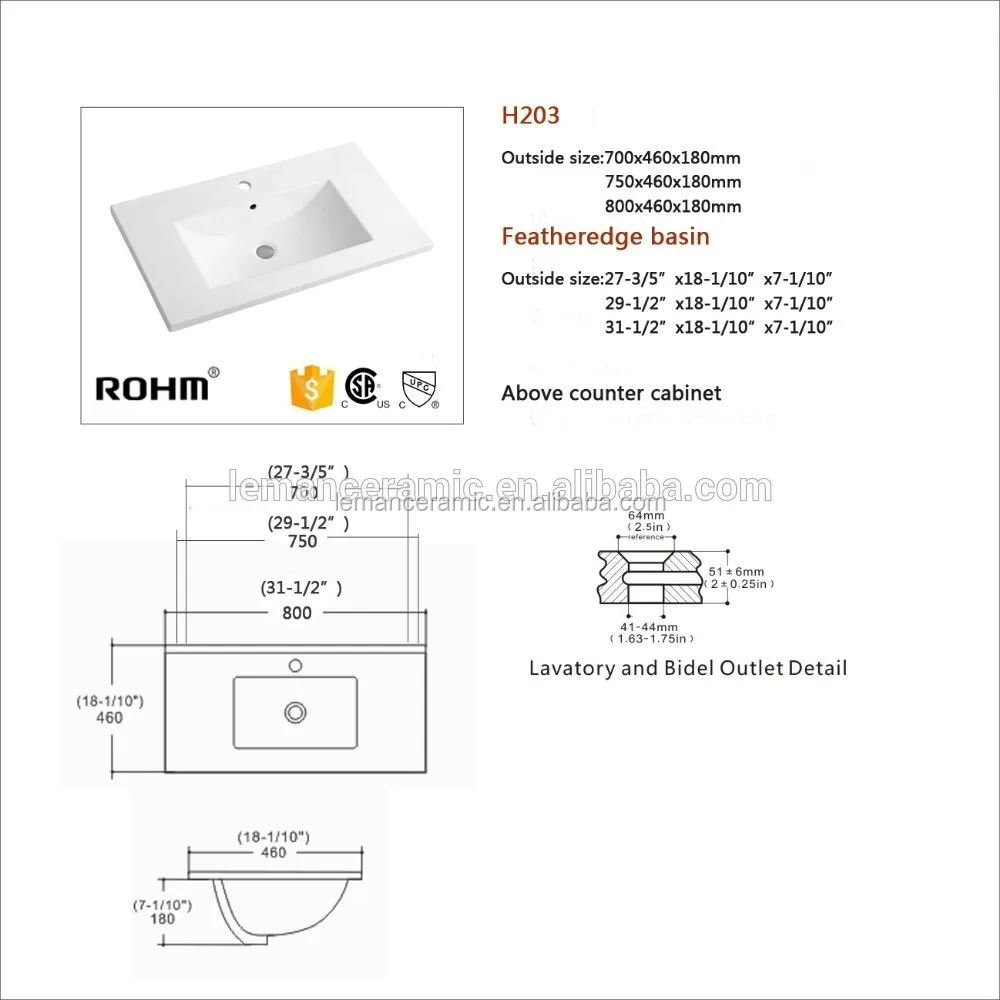 | Product Name | H203(30mm) Cabinet basin | Size | 31-1/2"*18-3/10"*6-9/10" |