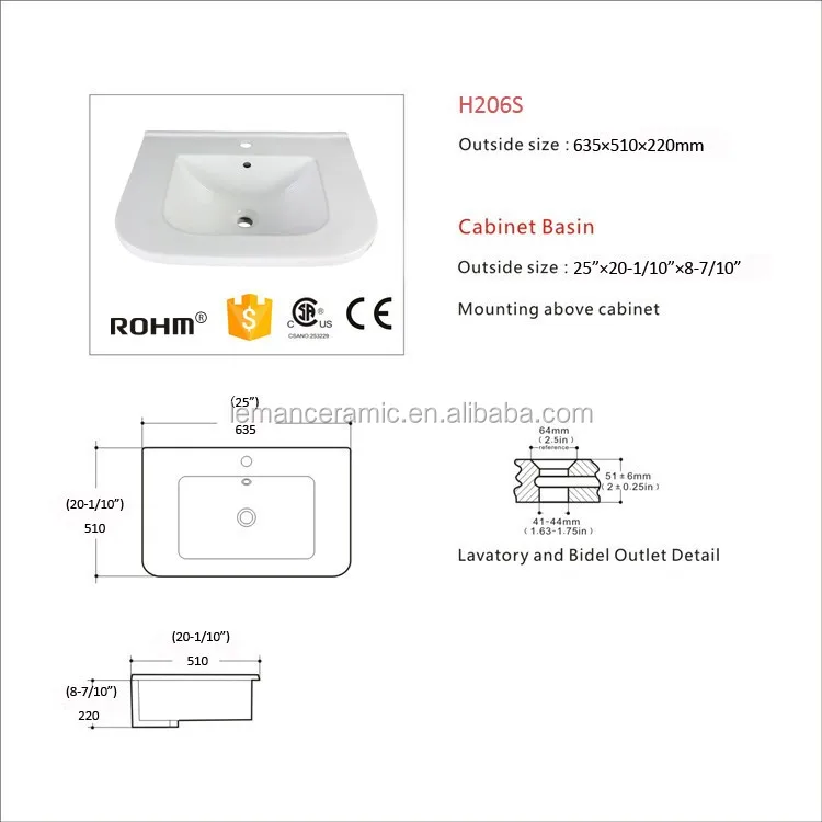 | Product Name | H206S Cabinet basin | Size | 25"*20-1/10"*8-7/10" |