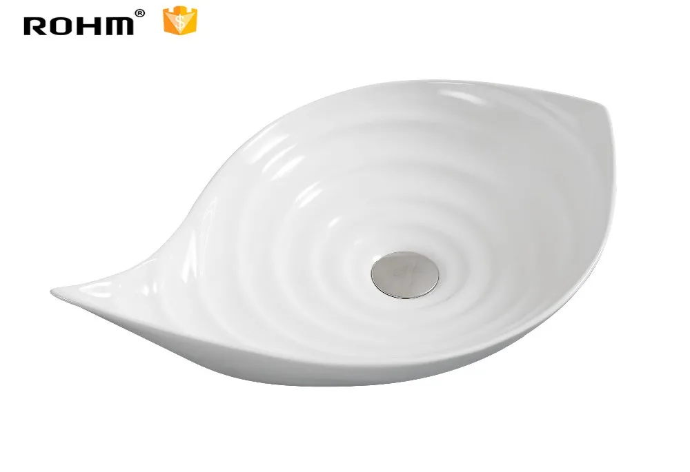 Leaf Shape Bathroom Indoor Above Mounting Counter Art Thin Edge Hand Wash Basin Sink