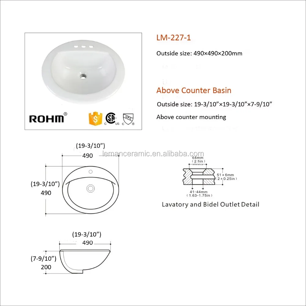 Chaozhao Leman Ceramic Co, Ltd. is a trading company, which is specialized in supplying ceramic wash basin like counter wash basin, above counter basin, art basin, cabinet basin. Most of our products have CSA, CUPC, CE certificates.