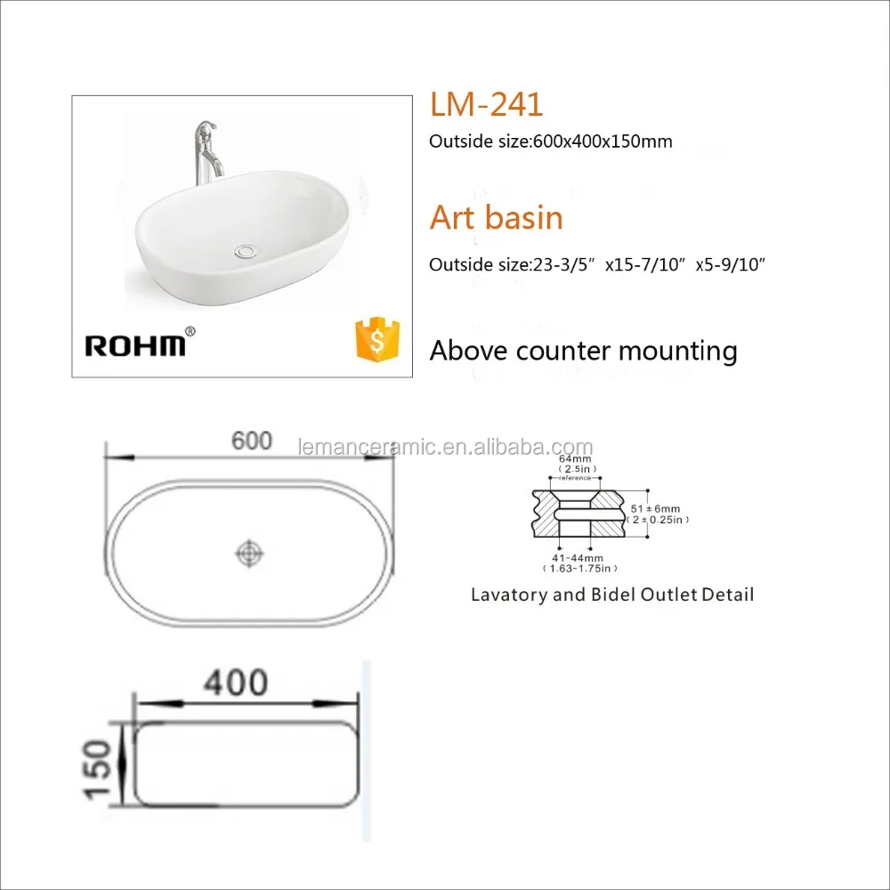 | Material | Environmental Ceramic and Self-cleaning Glaze | Type | Oval ceramic wash basin from China |