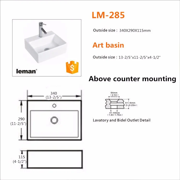 Chaozhao Leman Ceramic Co, Ltd. is a trading company, which is specialized in supplying ceramic wash basin like counter wash basin, above counter basin, art basin, cabinet basin. Most of our products have CSA, CUPC, CE certificates.