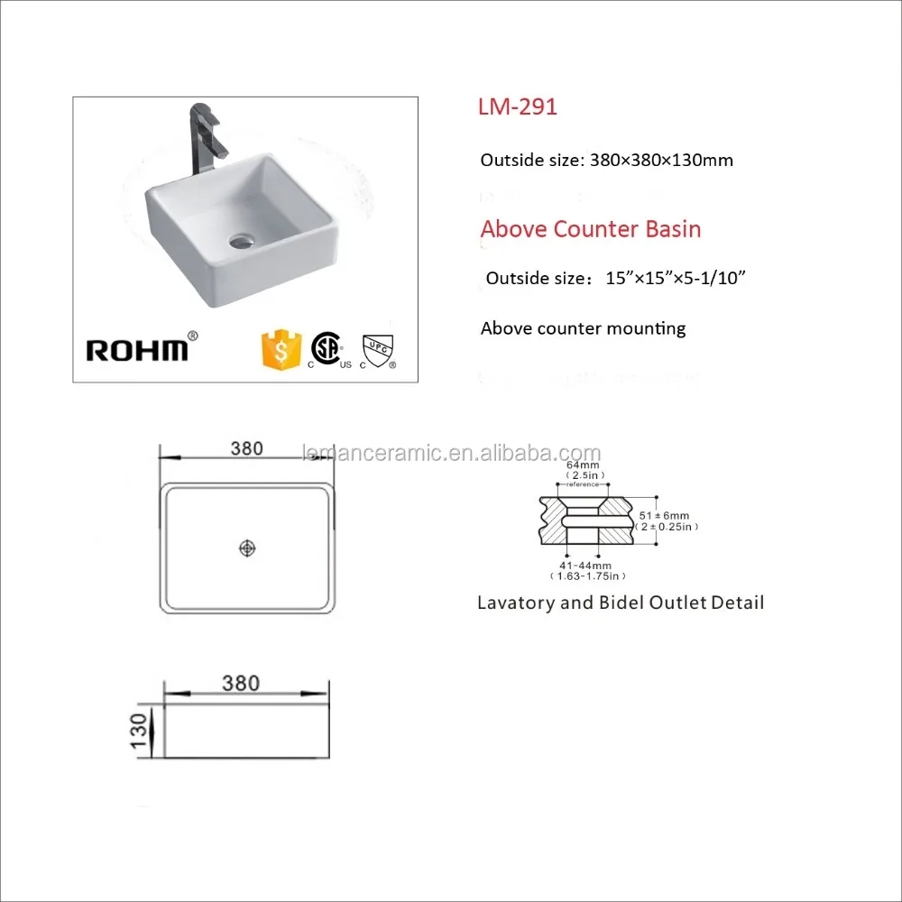 LM-291 Small Size Over Counter Basin, Bathroom Hand Wash Sink,Square Shape Sink