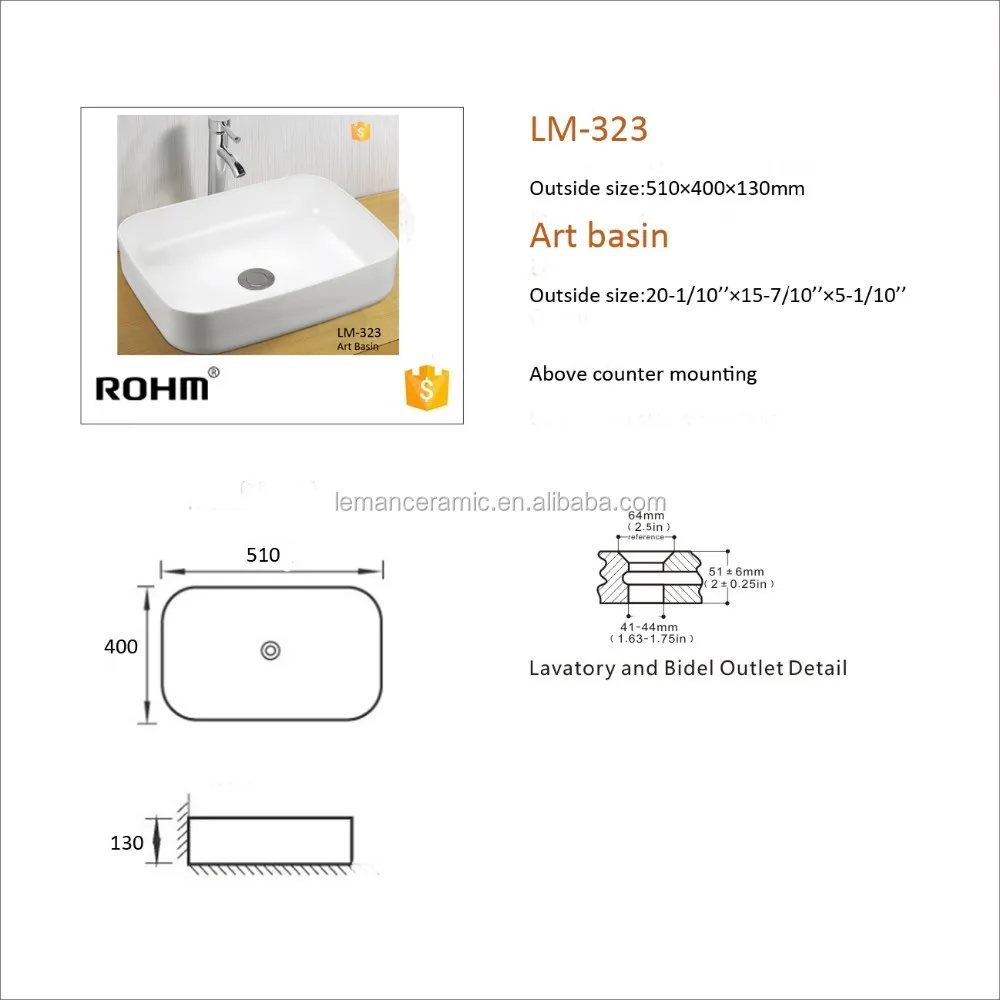 LM-323 White Rectangle Ceramic Bathroom Art Basin Sink Water Basin