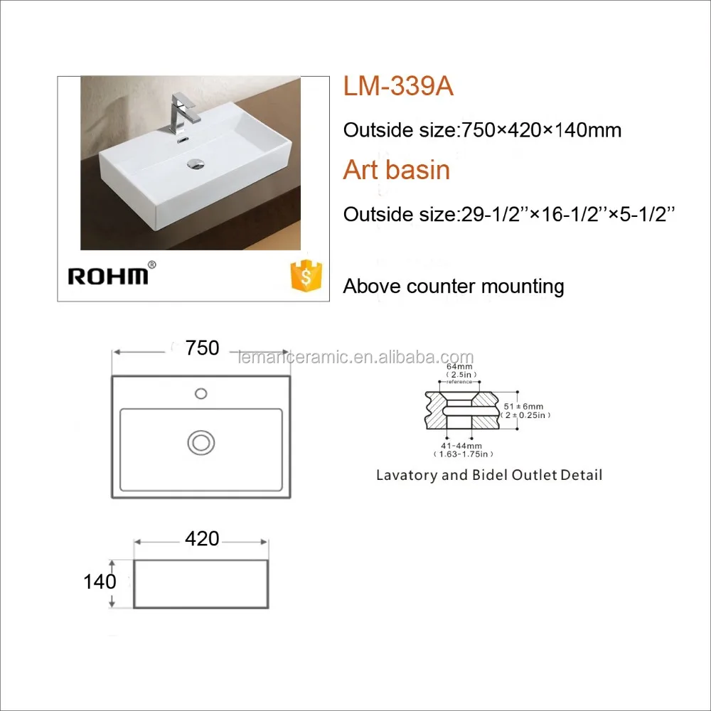 | Material | Environmental Ceramic and Self-cleaning Glaze | Type | Rectangular ceramic wash basin from China |