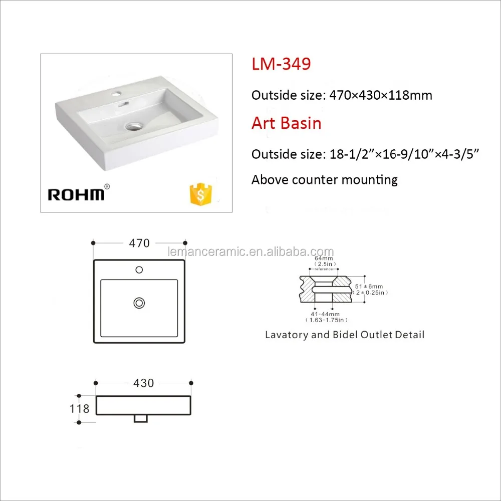 | Material | Environmental Ceramic and Self-cleaning Glaze | Type | Rectangular ceramic wash basin from China |