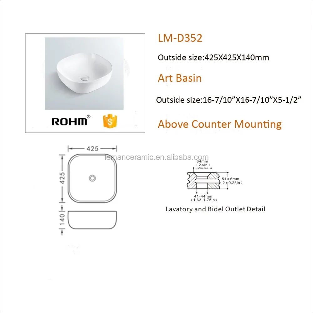 | Material | Environmental Ceramic and Self-cleaning Glaze | Type | Square ceramic wash basin from China |
