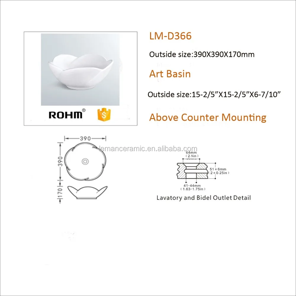 LM-D366 Porcelain Sinks Petal Wash Basin Shape Hot Item
