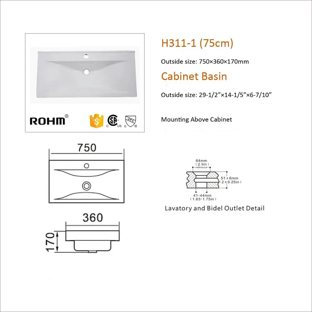 | Product Name | CABINET WASH BASIN | Size | 750×360x170mm |
