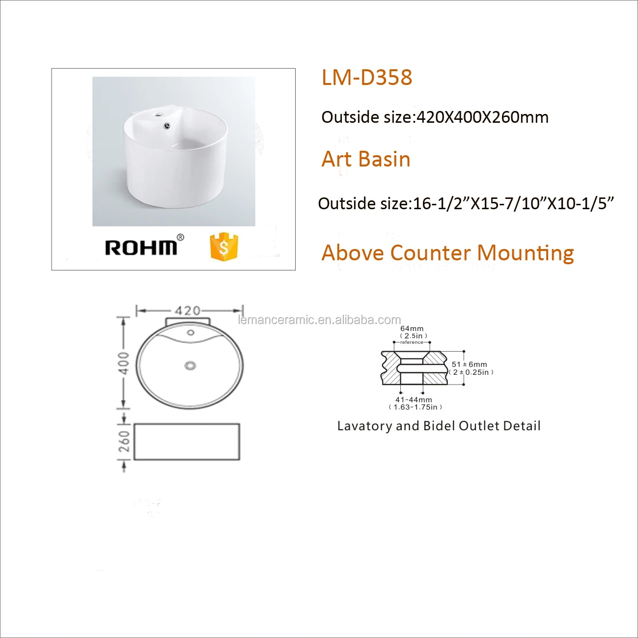 | Material | Environmental Ceramic and Self-cleaning Glaze | Type | ROUND ceramic wash basin from China |