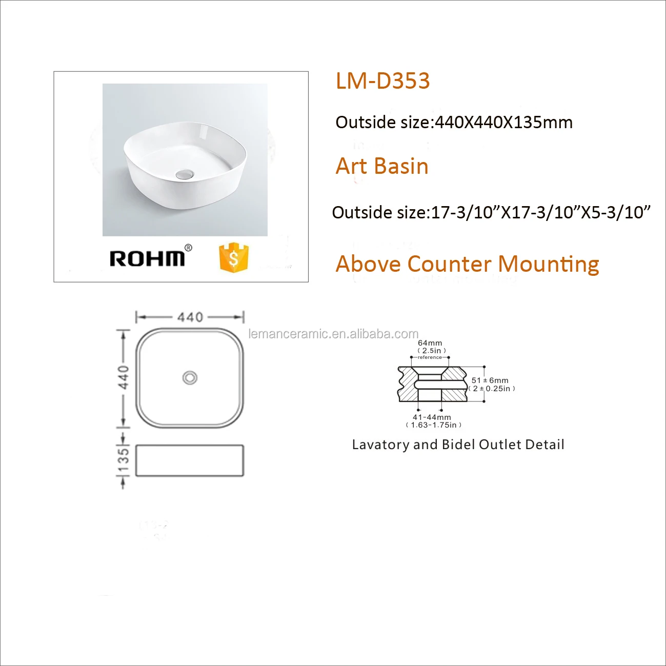 | Material | Environmental Ceramic and Self-cleaning Glaze | Type | ceramic wash basin from China |